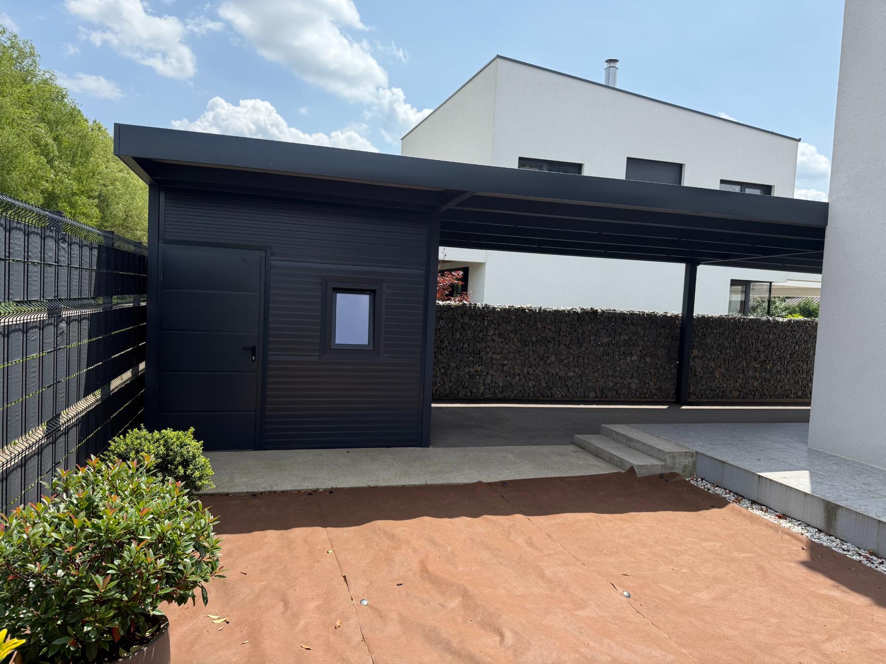 Da, to je zelo priljubljeno in celo priporočeno. Strankam priporočam ravno enoten izgled skupaj z nadstreškom za avto. Prednost je enoten videz in boljša izraba prostora.